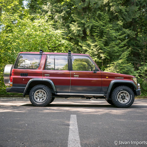 If you love classics, this 70 series Prado is a must have! Featuing the 1KZ turbo diesel engine, this two-tone wine + black exterior is a rare find. Accentuated with new fog lights, new rear ladder, new tire cover, and AIBA roof rack you're all set to go on all kinds of adventures! It's not all looks though, as this part-time 4WD beast features true hi-lo capabilities and new BF Goodrich all-terrain tires for serious off-roading. Inside, you'll find a beautiful brown interior with new bluetooth stereo + backup camera to make your journeys that much more enjoyable!