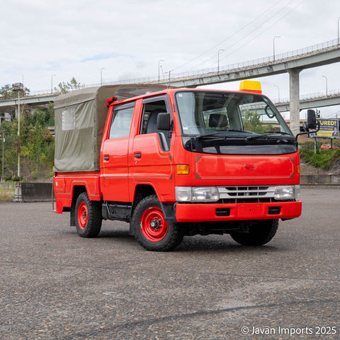 Double trouble for the 2nd of two double cab firetrucks we're bringining in this summer! This beast features part-time 4WD with manual locking hubs, true hi-lo capabilities, and new BF Goodrich all-terrain tires for dependable off-road performance. It’s powered by the robust 3L diesel engine with ONLY 6,200 MILES, making it an exceptionally low-mileage workhorse. With seating for 6 across two rows and loaded with firefighting accessories, it’s both functional & exciting. This Dyna will undergo extensive maintenance stateside to ensure it’s ready to servce!