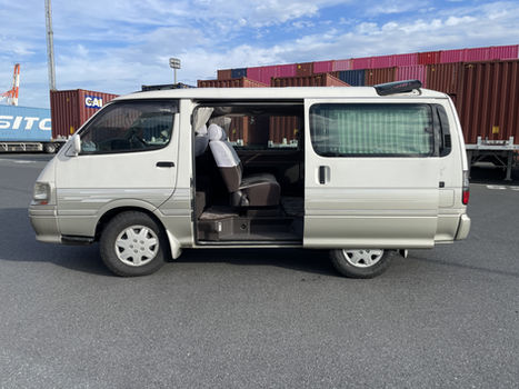 Here’s a stunning HiAce in Elegant Flaxen Toning (pearl white) equipped with the legendary 1KZ turbo diesel engine and just 67,000 miles on the clock. This one features the iconic triple moonroof configuration along with seat covers and curtains for added comfort and privacy. Outfitted with new Toyo Open Country all-terrain tires, it’s ready to hit the road or trail. Maintenance will be completed domestically, ensuring it's in top form for its next adventure.